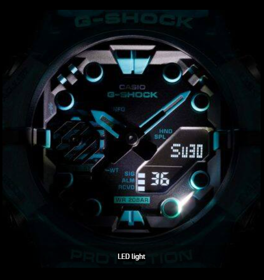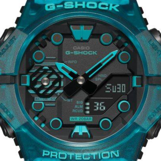 Introducing the GA-B001 Series of G-SHOCK watches - Featuring a new rugged design and Smartphone Link functionality in bold color schemes that transport you to the stylish city streets. These watches are not only stylish, but are also functional. Sync with your smartphone via Bluetooth® and use the dedicated app to access the features you need. The GA-B001 series features an innovative construction, with two separate bezel components on the top and bottom that connect together at the 9 and 3 o'clock positions. This ingenuity is complemented by careful attention to detail, with index markings and a uniquely shaped LCD screen designed like never before on a G-SHOCK. Choose from all black, either black or turquoise blue in a translucent hue, or the latest expansion, red.